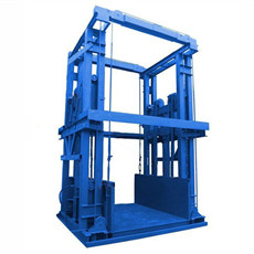 固定式剪叉式升降貨梯是靠剪刀式支撐架的展開與折疊來完成貨物平臺升降的,以錳鋼矩形管作為吊裝機構,將物品從一定高度提升到另一個